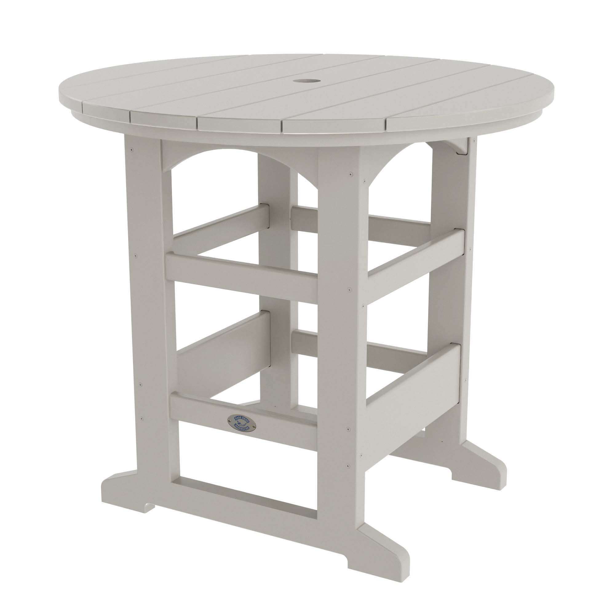 This Round Counter Height Table has a spacious 40 inch round table top that provides ample elbow room for everyone and sits at 35 inches high making it a perfect companion for our Counter Height Dining Chairs. It features an umbrella hole that fits up a 2 inch diameter pole and includes a matching DURAWOOD® plug so you can conceal the hole when not in use.